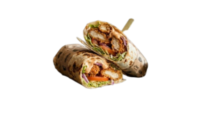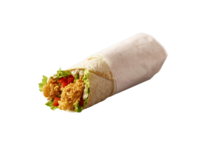 Crispy fried chicken wrapped with fresh vegetables and creamy sauce in a soft tortilla...